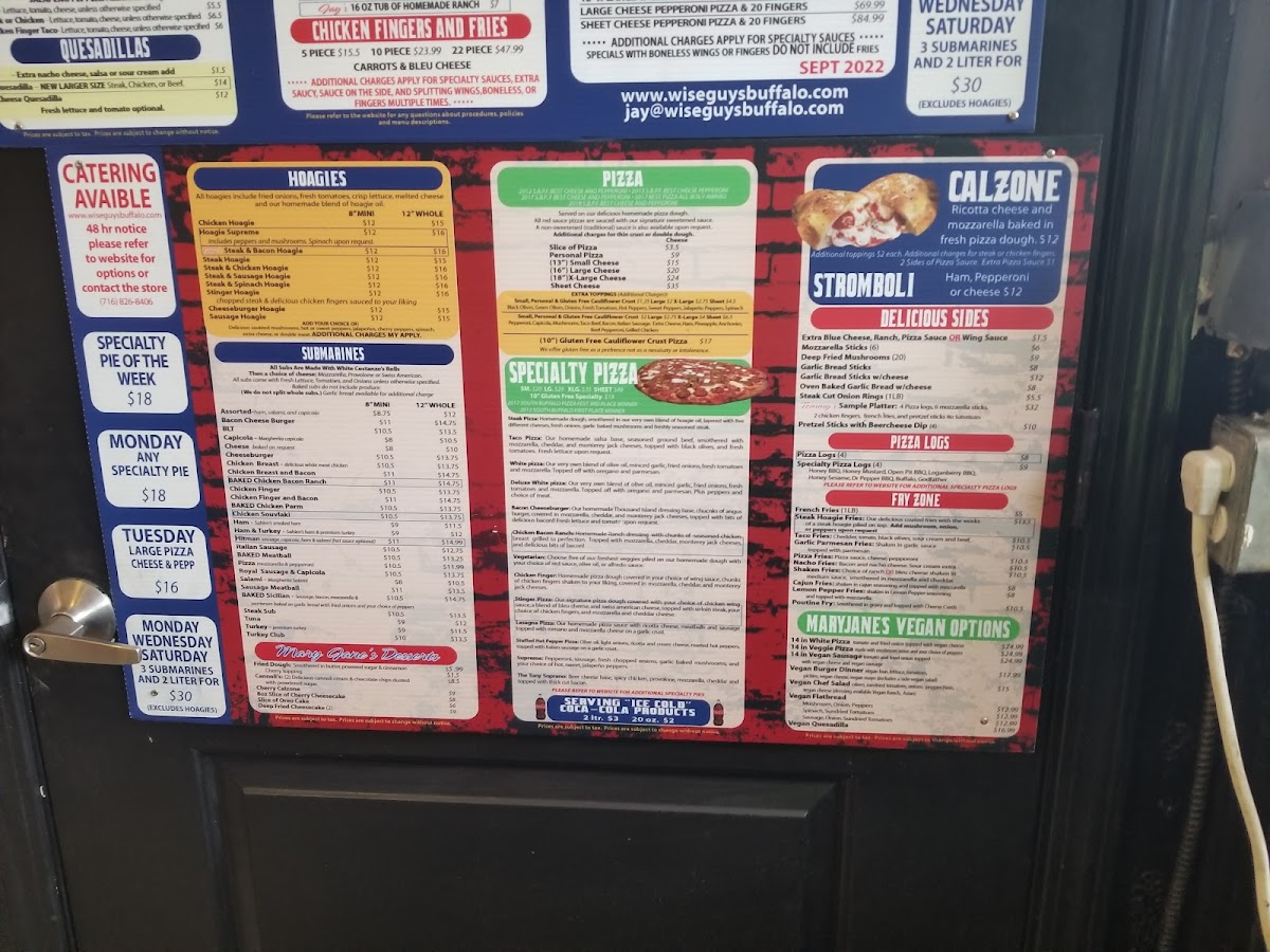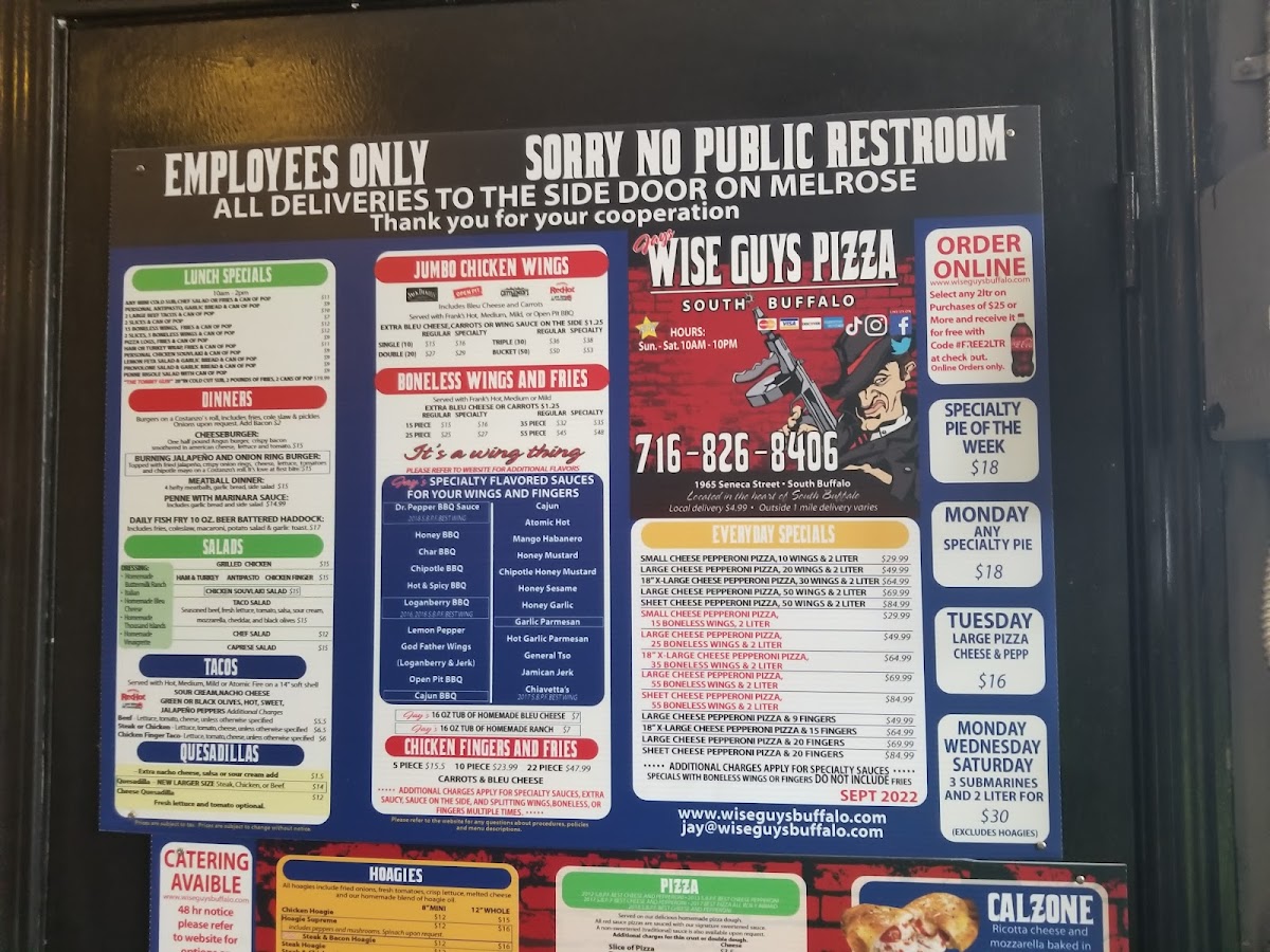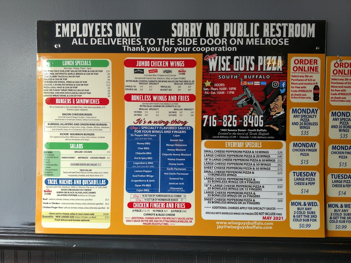 Wise Guys Pizza is a beloved gem in South Buffalo, known for its irresistible flavors and exceptional service. Customers rave about the thick, golden crispy crust topped with generous amounts of cheese and a sweet, tangy sauce that keeps them coming back for more. The standout offerings include the unique loganberry BBQ chicken fingers and mouthwatering pit wings, which have garnered a devoted following. Each dish is crafted with care, making for a memorable dining experience. Whether for a quick lunch or a family meal, Wise Guys Pizza promises to satisfy cravings and leave diners eagerly anticipating their next visit.