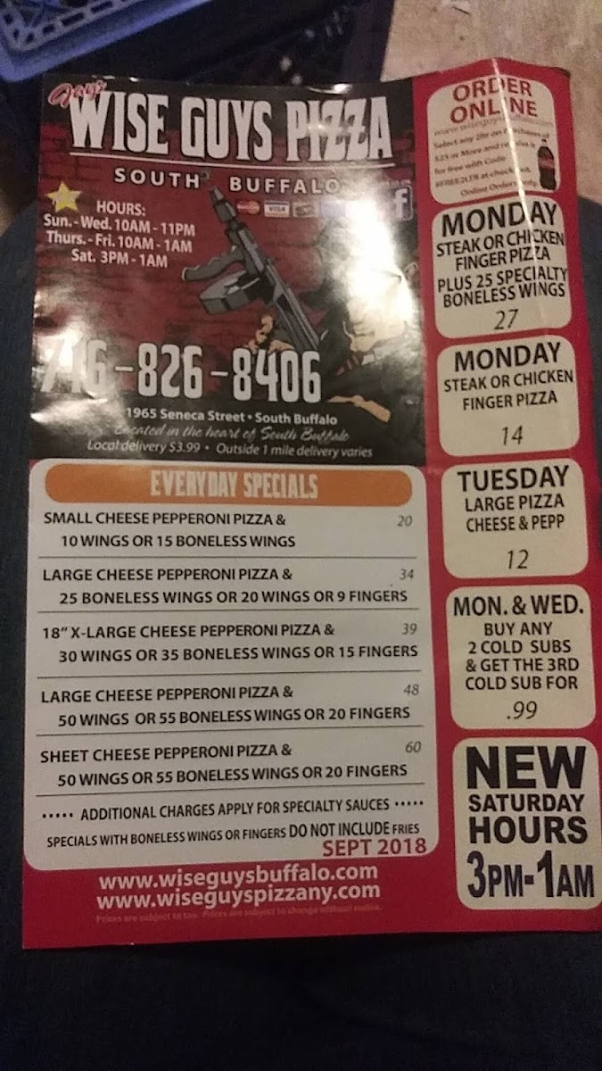 “ Wise guys has become my family's personal favorite. The pizza has a flavor that you crave. The wings/fingers and sauce options are amazing. Im obsessed with loganberry BBQ fingers on the pit...gives new life to what you think of as a "chicken finger". Sad I will be moving out of south buffalo soon...but will certainly be driving out from time to time just to get me some Wise guys. ”